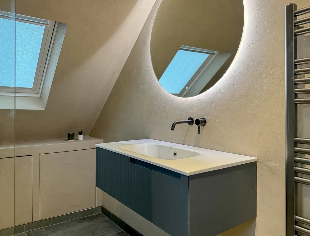 Microcement (also known as micro cement) creates a smooth, continuous surface with no grout lines and a clean, architectural look. In many cases, it can be applied over existing surfaces — reducing demolition, saving time, and lowering overall costs.